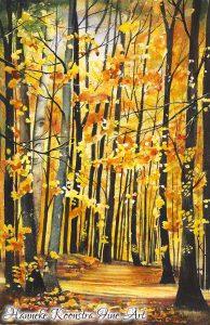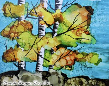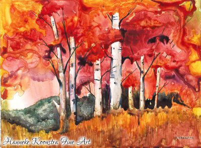 309. Alcohol Ink, Autumn Birch, 8x10 matted (sold)
