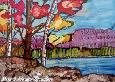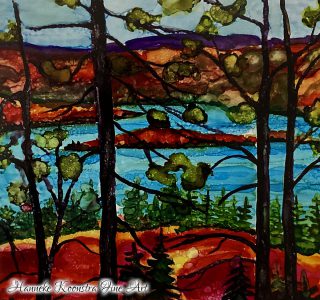After a week camping in Algonquin Park I was inspired to paint a series of landscapes with alcohol ink.