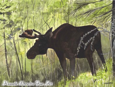 313. Watercolour, Algonquin Moose, 16x20 matted (sold)