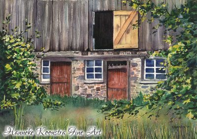 317. Watercolour, Barn Doors 16x20 framed (sold)