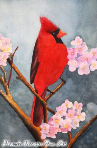 324. Watercolour, Spring Cardinal 11x14 matted (sold)