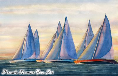 330. Watercolour, Sunset Regatta 21x14 (sold)