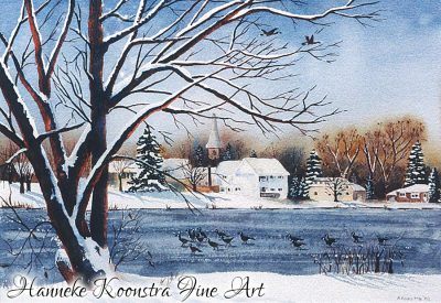 375. Watercolour, Frozen Pond 16x20 matted (sold)
