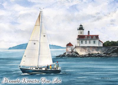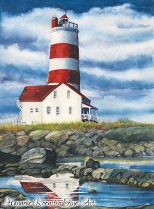 I was on the ferry from Newport to Providence Rhode Island and saw this lovely light house under the bridge (sold)