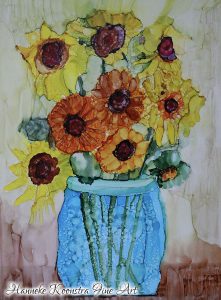 311. Alcohol Ink, Summer Bouquet, 10x14 matted (sold)